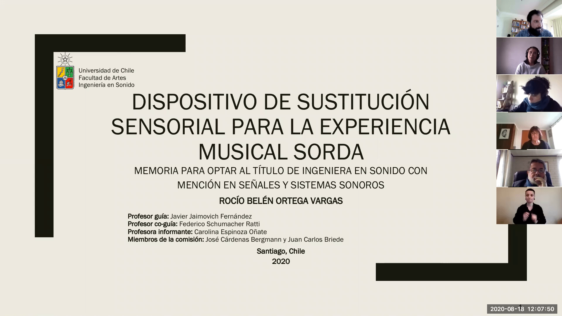 Revisa en profundidad sobre este proyecto de titulo en la noticia del siguiente enlace: http://www.artes.uchile.cl/noticias/166779/se-titula-la-primera-ingeniera-en-sonido-de-la-facultad-de-artes