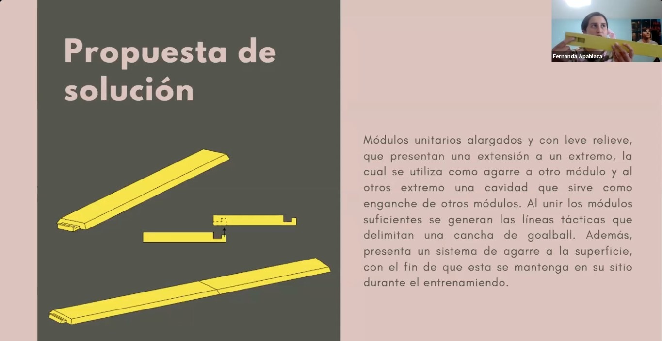Por otro lado, Fernanda también nos contó su visión de la jornada: Es una experiencia motivante ser parte de este proceso, sobre todo en este contexto ya que es todo un reto explicar un deporte que es tan desconocido, pero el interés y compromiso que los estudiantes y Gabriela han demostrado se agradece. Se agradece el ponerse en el lugar de otro, intentar vivir la experiencia para conocer realmente la necesidad, y luego con creatividad e ingenio hacer algo para cubrir esa necesidad. Los avances que nos han mostrado son bastante buenos y se nota que nos entendieron, por eso estoy ansiosa de ver los resultados y probar las cosas con Melany.